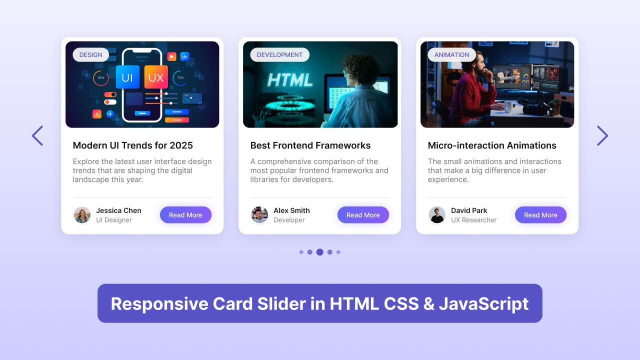 Slider adalah bagian penting dari desain web modern. Mereka biasanya digunakan untuk menampilkan konten seperti testimonial, produk, atau portofolio. Mereka tidak hanya terlihat Buat Slider Kartu Responsif di HTML CSS